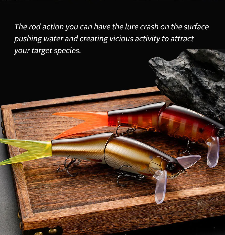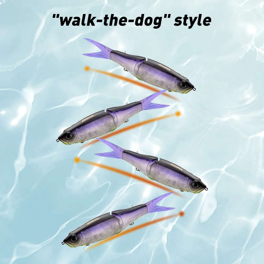 This lure have 3 swimming action , with little lip , it could be swimming bait , with the big lip ,it could make noise and swimming as the video ,and if no lip , you could walk the dog