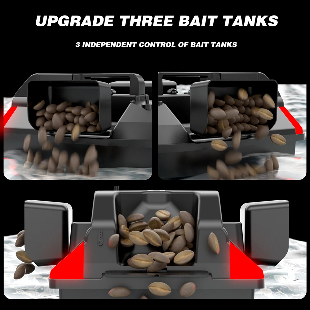 Triple Bin Design: Adopt independent control three bin design, the load capacity is about 2kg, you can control the fixed-point nesting at will. The anti-unhooking design is added to the rear bin, which can send the hook and release line for preventing the fish line from winding.