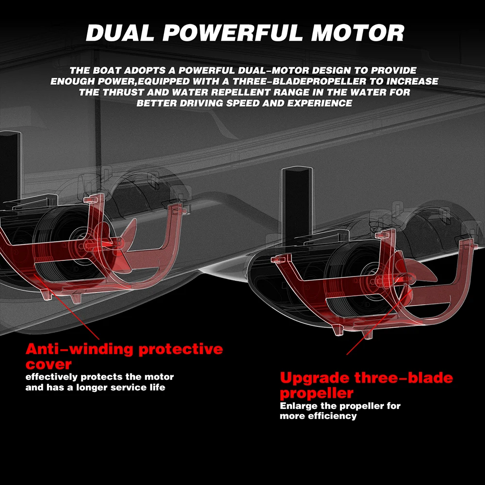 Strong Power: Strong dual-power motor system, silent operation, will not disturb the fish. Upgrade high-efficiency three-blades propeller can provide strong power, quick cruise.