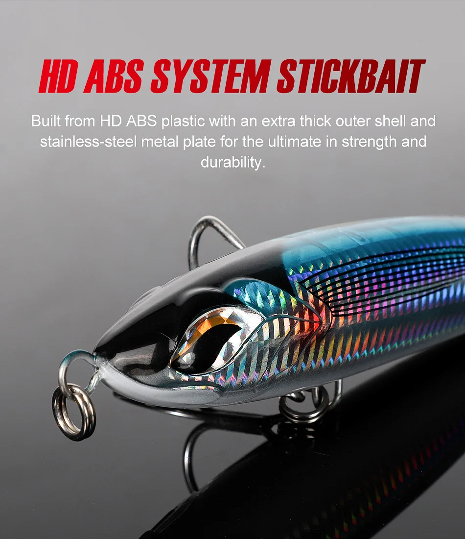 5. HD ABS system stickbait– bulit from HD ABS plastic with an extra thick outer shell and stainless-steel metal plate for the ultimate in strength and durability.