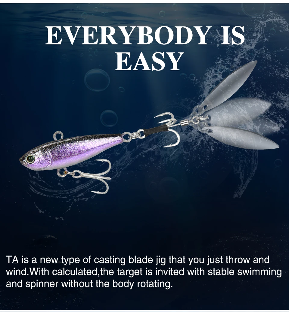 2. The TA merges the enticing flash and attraction of an 360° spinner with the life-like, bait fish patterns.