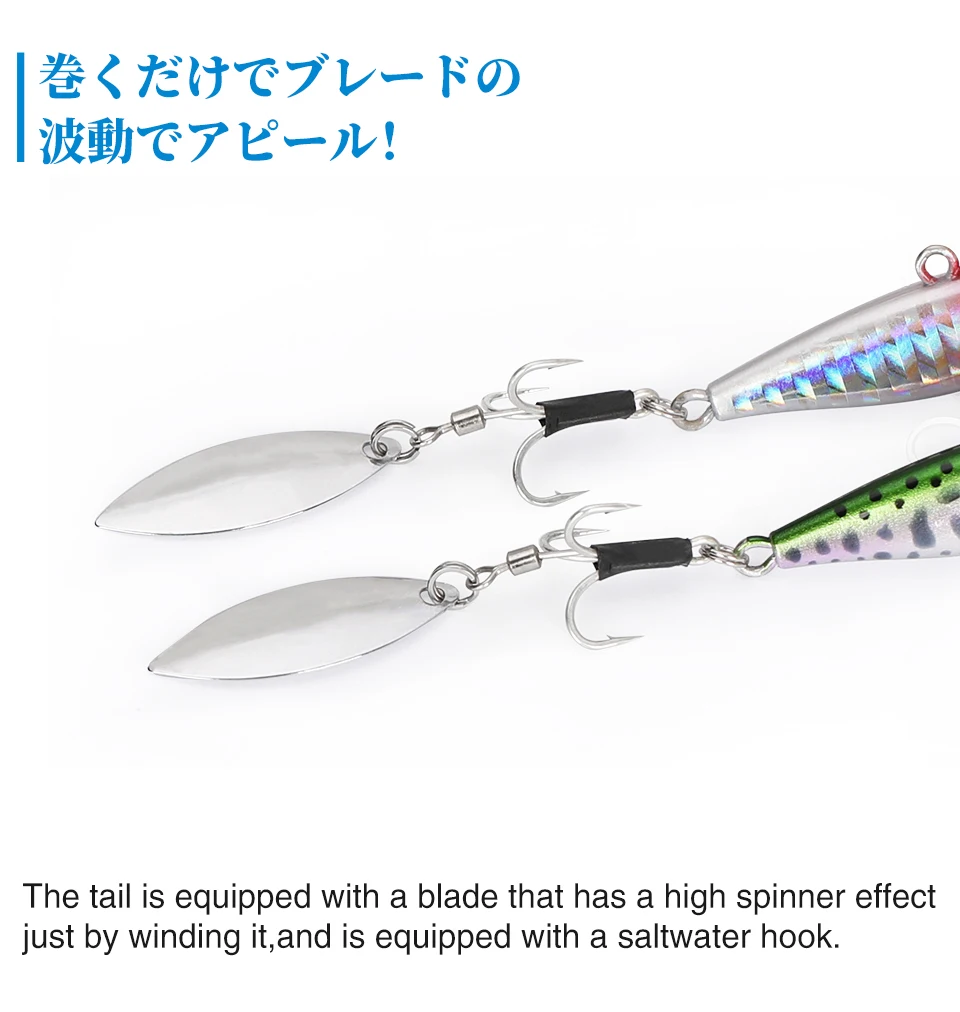 1. The tail is equipped with a blade that has a high spinner effect just by winding it, and is equipped with a saltwater hook.