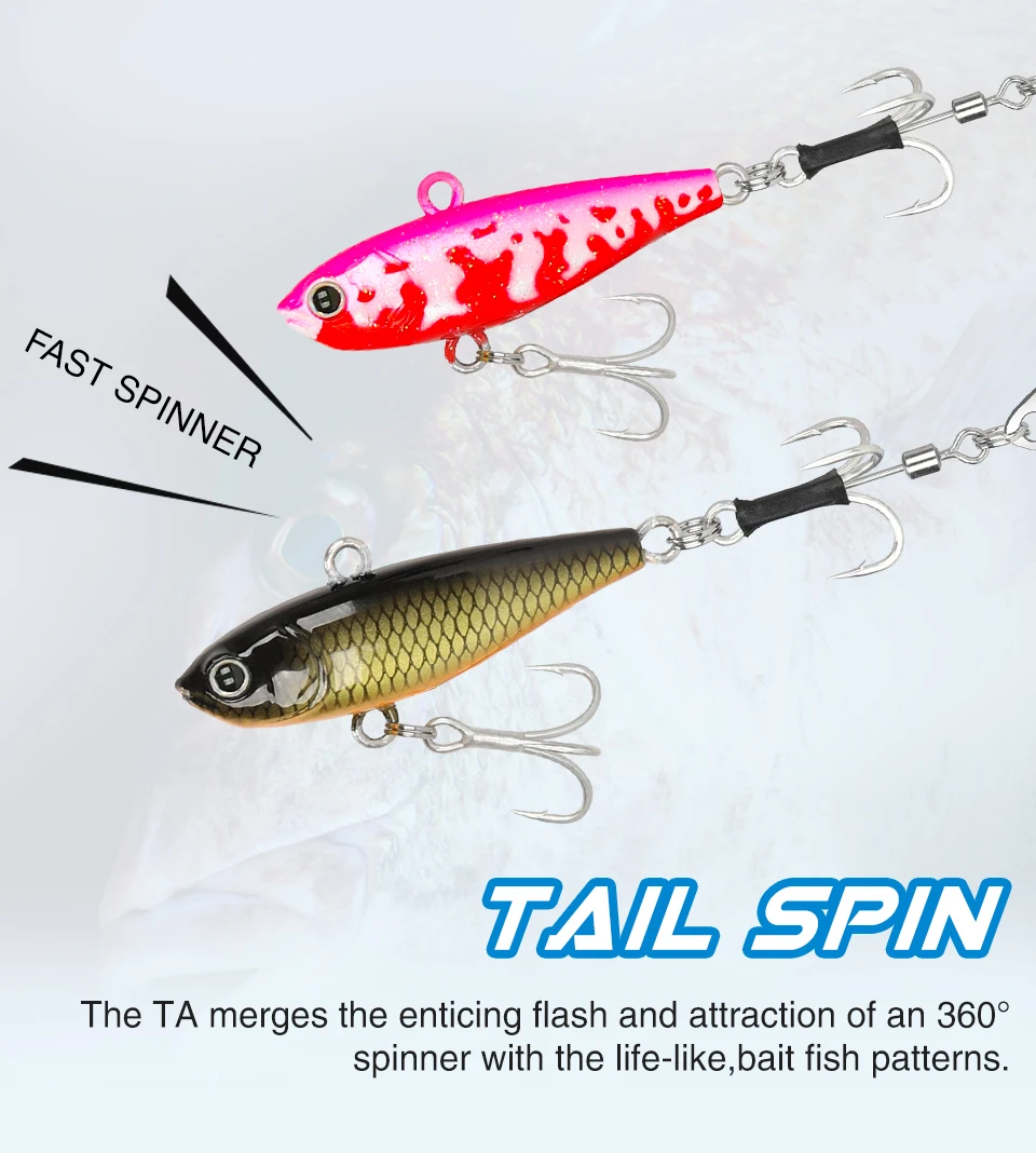 2. The TA merges the enticing flash and attraction of an 360° spinner with the life-like, bait fish patterns.